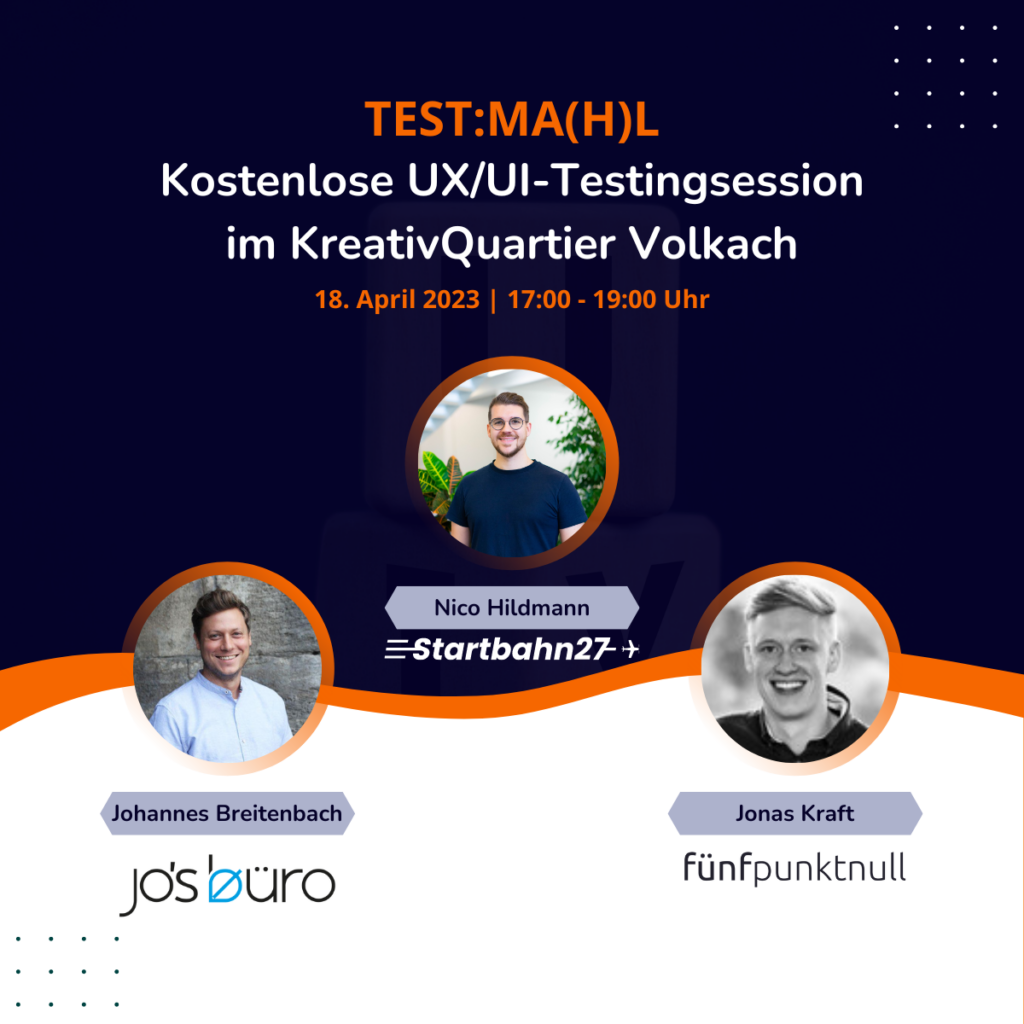 Jo bietet gemeinsam mit den UI/UX Experten Jonas von fünfpunktnull und Nico von Startbahn27 in Volkach ein einma(h)liges Event an.
