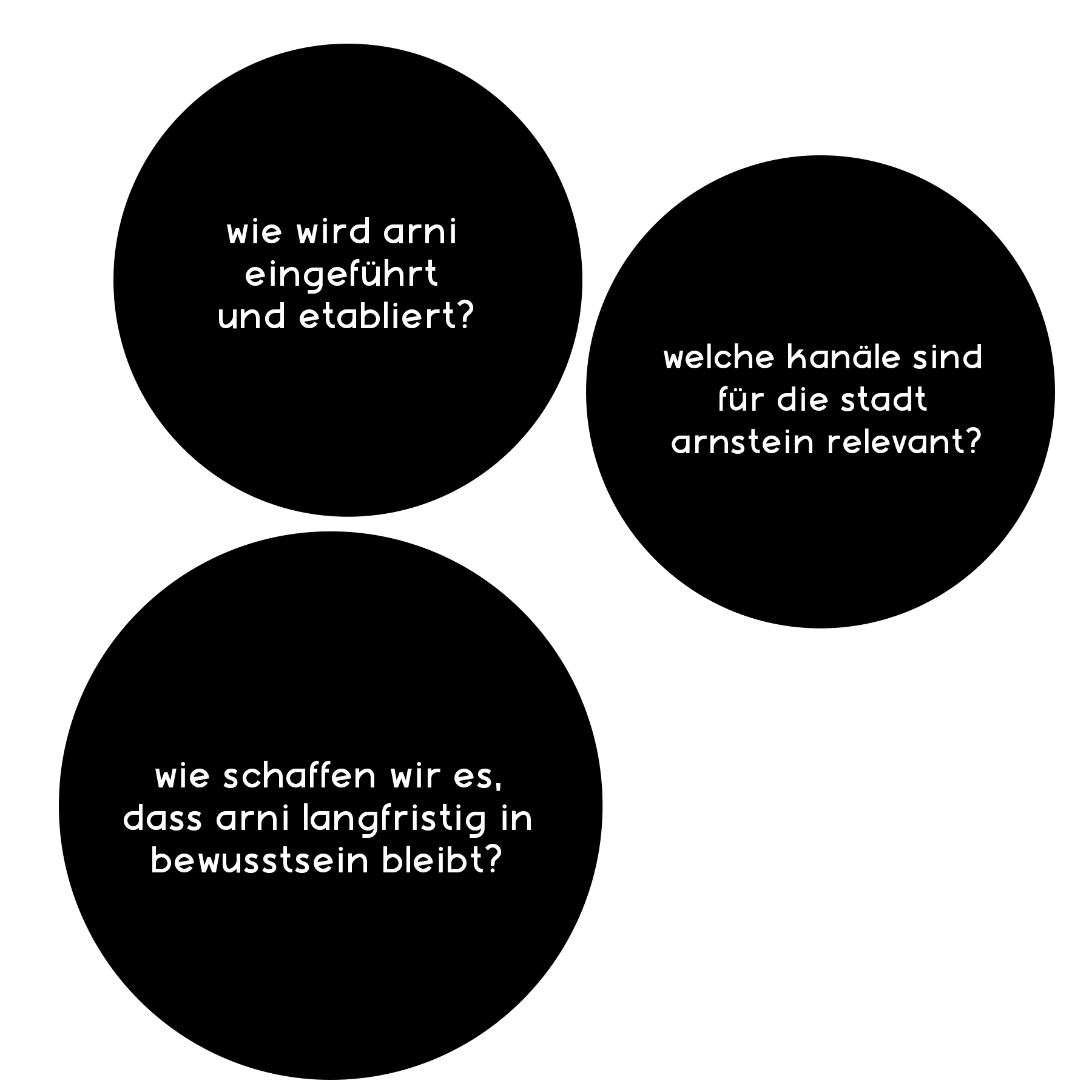 Der Prozess begann mit einem intensiven Kick-off Workshop in unserem Büro. Zusammen mit dem Team der Stadt Arnstein und Florian von der IT-Projektschmiede haben wir uns mit den zen­tralen Fragen auseinander­gesetzt: Wer oder was ist arni eigent­lich? Welche Werte soll er verkörpern? Wie schafft er es, die Menschen der Stadt zu erreichen? An welchen Touch­points be­gegnet man ihm im Alltag?