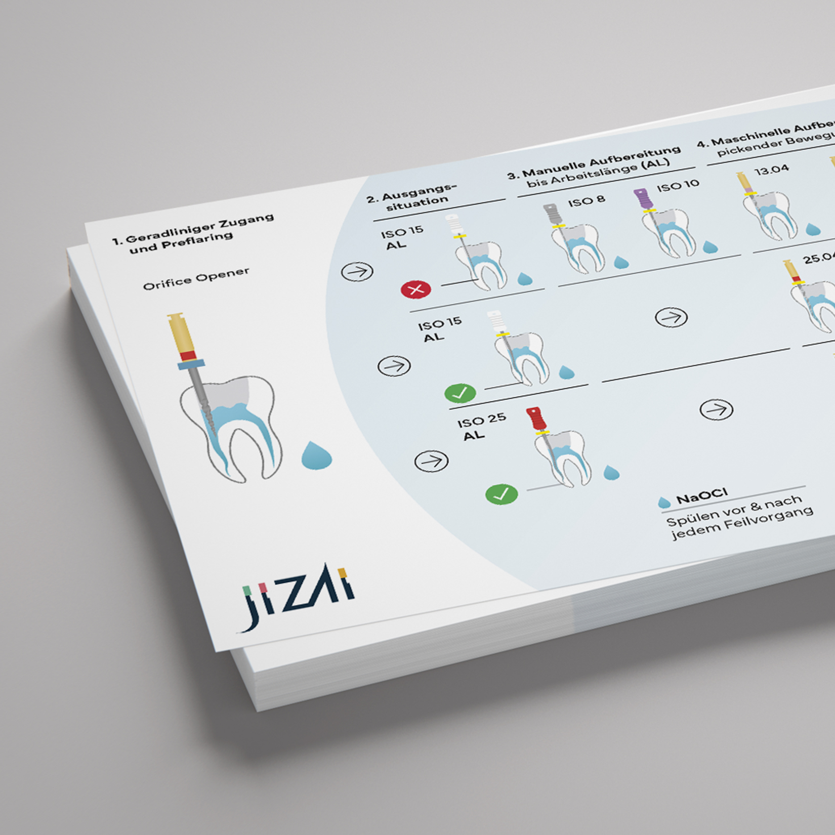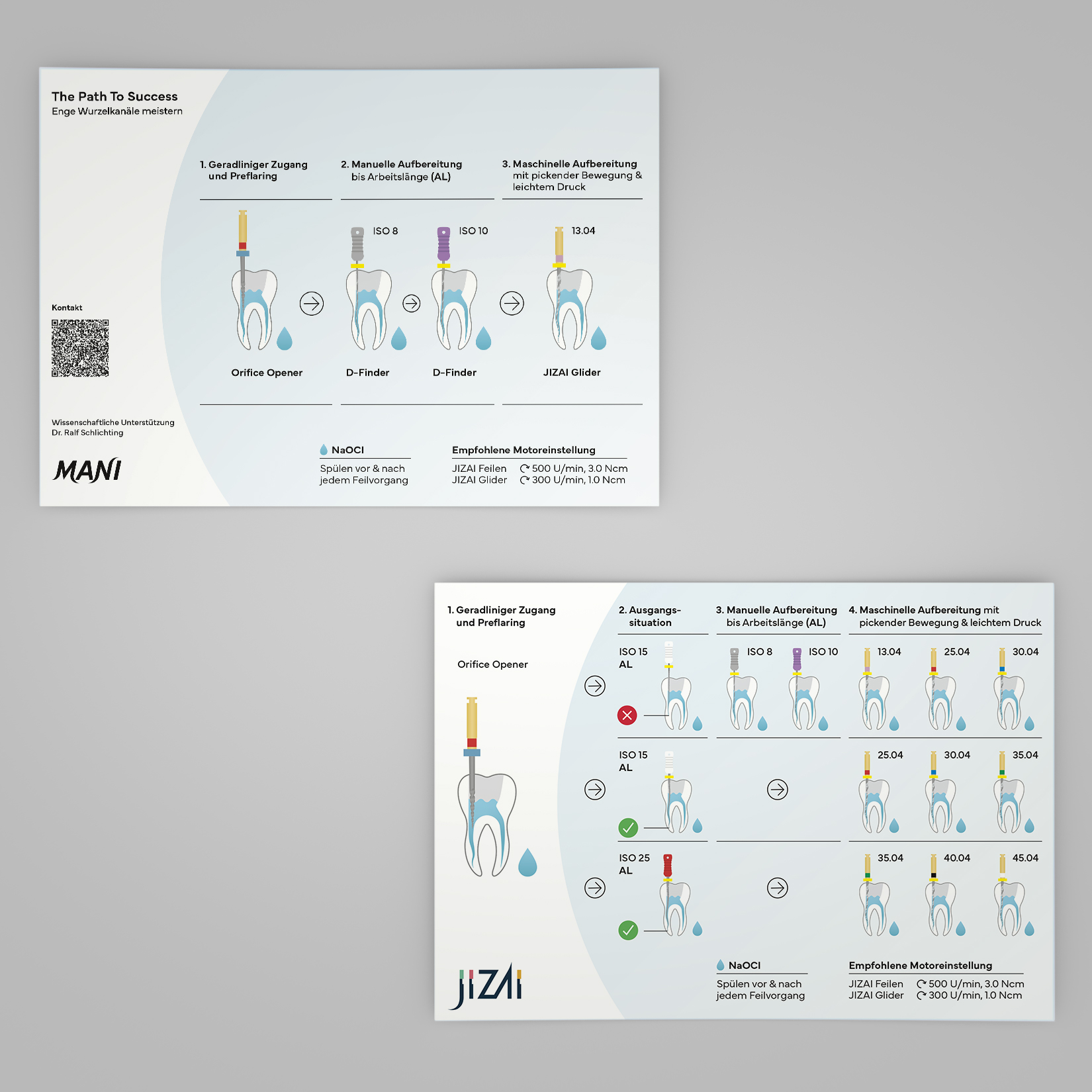 Gemeinsam mit MANI MEDICAL GERMANY GmbH entwickelten wir einen Flyer, der Zahnärzt*innen während der Wurzelbehandlung einen schnellen Überblick über die einzelnen Behandlungsschritte geben soll.